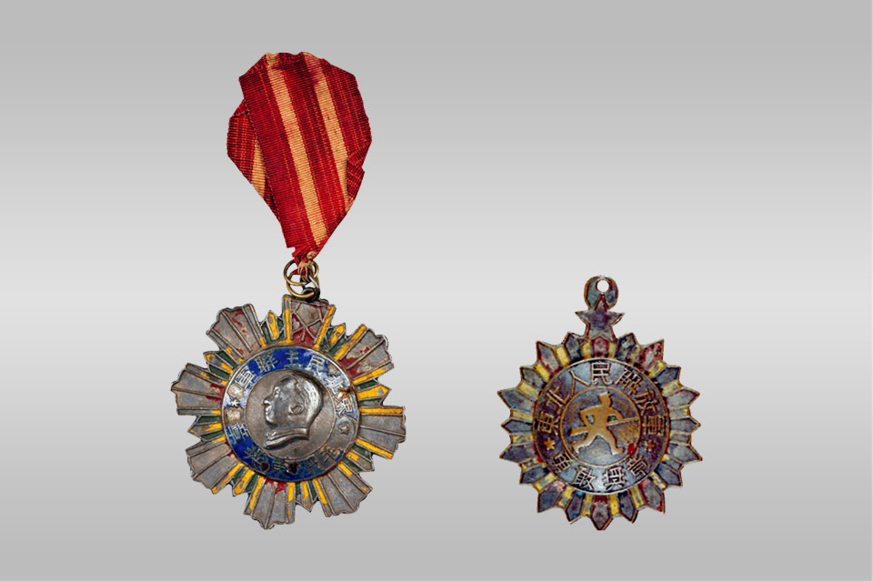 郅顺义荣获的东北民主联军“毛泽东奖章”和“勇敢奖章”