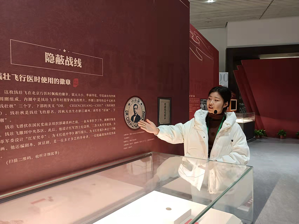 一位学生放下3D眼镜后,向记者兴奋地说到:“硝烟弥漫的战场、连绵不绝的枪炮声、脚下是水流湍急的大渡河畔……战场的厮杀声还回荡在耳边,感觉自己参加了一场真实的战斗。”。 VR展区设有长征纪念馆和革命遗址虚拟游览,进行720°全景参观,仿佛能把展柜中的文物“抓”在手中,全方位、互动式观看革命文物,聆听讲解,身临其境感知革命文物价值,激发对红色文化的兴趣爱好。“更直观地看到了每一件文物背后所蕴含的精神和故事”、“这种与红军战士并肩作战的感觉太震撼了”活动现场,体验后的观众一致好评。 “相较于普通的VR体验,VR+党史可以让观众全程与红军战士们共同作战,同甘共苦,对红军作战的艰苦条件感同身受,更能明白革命先烈的不畏牺牲与无私奉献,特别是让青少年从内心升起对革命先烈的崇敬之意,激发他们对革命文物的极大兴趣,这便是VR+党史的感染力。”智云鸿道的工程师代云康向记者介绍。 讲解团队负责人吴艳华,一位热情洋溢的志愿者,退役前系北京军区联勤部上校正团职工程师,也是北京军区第一位女特种兵学员,曾在CCTV-7报道过她的事迹。 她结合自己26年的从军经历,开创了独特的情感互动沉浸式讲解方式,不久前在山西长治《不忘来时路 永远跟党走》展的讲解中打动了国家广播电视总局聂辰席局长,在本次展览中她和她的“00后”学生程羽堂、王清雨、李泽帅依然用这一方式,再次打动了一批又一批的观众! 讲解团队的志愿讲解员兼教练刘波教授,一遍遍耐心地给小弟子们讲历史,不经意间,观众中出现了一位特殊的“小尾巴”。这天恰逢中国空军节,刘教授在讲解“列宁”号飞机时,观众中一位小姑娘王晓蕊拿起笔,听着听着,一分钟之内即画出一幅红军飞行员的漫画。王晓蕊给说:“我给爸爸妈妈说了,也要向刘教授、吴老师一样,当一名博物馆志愿者”。