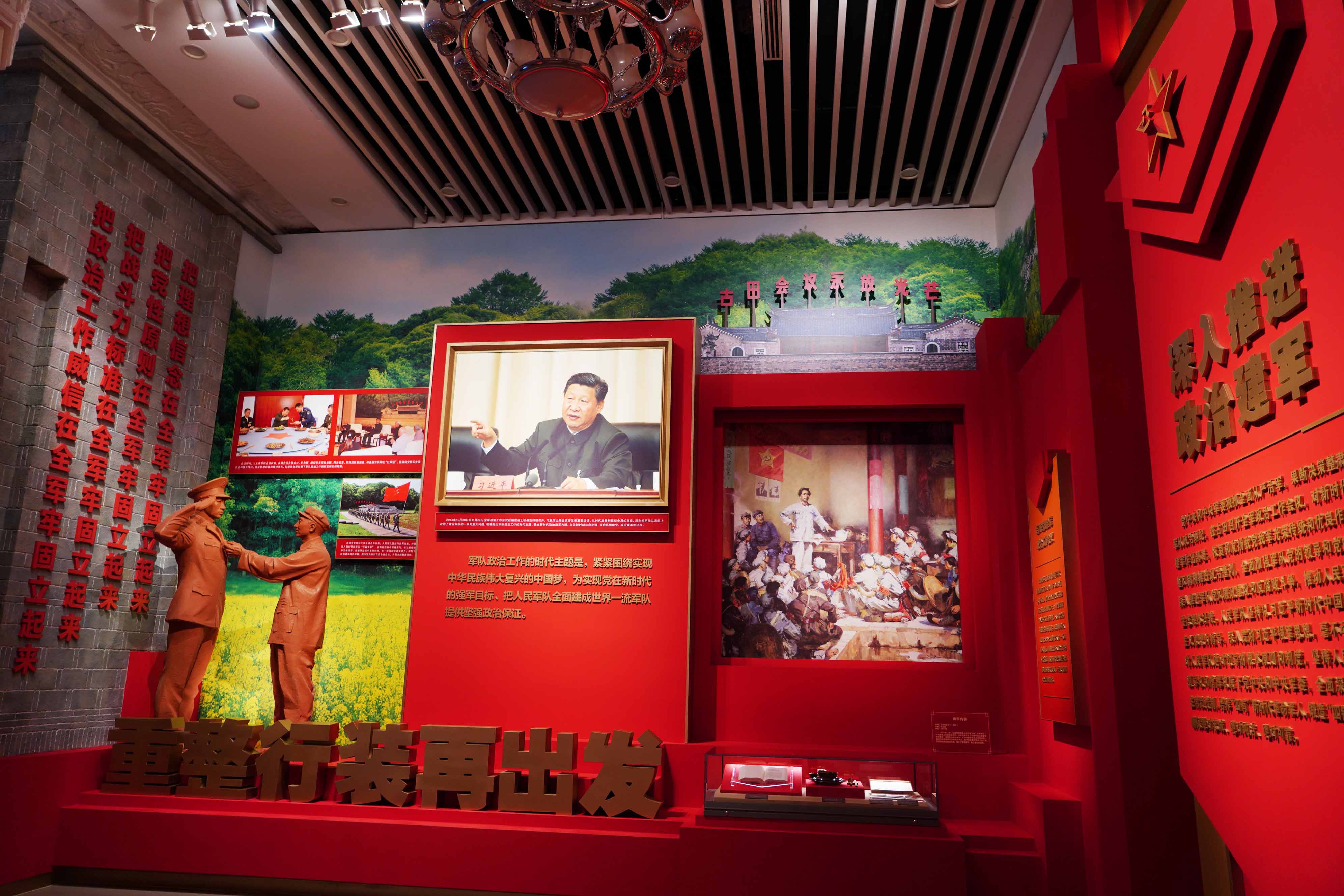 设置“党在新时代的强军目标”、“重整行装再出发”、“砺剑铸盾 奔向一流”、“大好河山 寸土不让”、“爱我人民爱我军”、“深情励三军 奋进新征程”等重点展项。